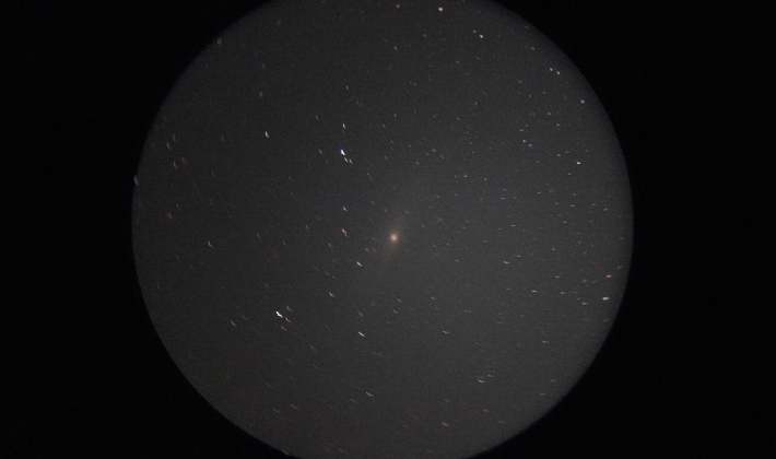 天体望遠鏡のように渦巻き構造までは分かりませんが、楕円形に広がる大きな光のかたまりとして捉えることができました。肉眼よりも存在感がはっきりし、「銀河」を見ているという実感が持てました。