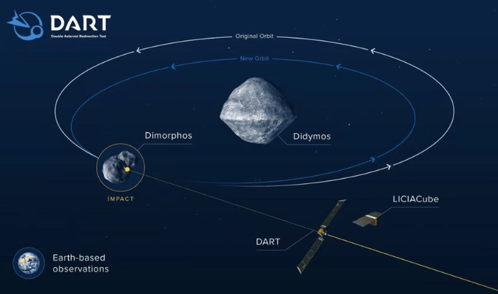 ãã®è±¡åŸŽçãªæåäŸãã2022幎ã«NASAã宿œãã DARTããã·ã§ã³ ã§ãããã®ããã·ã§ã³ã§ã¯ãç¡äººæ¢æ»æ©ãå°ææã®è¡æãã£ã¢ã«ãã©ã¹ã«æå³çã«è¡çªãããå®éšãè¡ãããŸãããè¡çªé床ã¯çŽ6.6km/sïŒãããæé2äž4,000kmïŒããã®è¡çªã«ãã£ãŠãå°ææã®è»éããããã«å€ããããšãã§ãããã©ãããæ€èšŒããã®ã§ãã