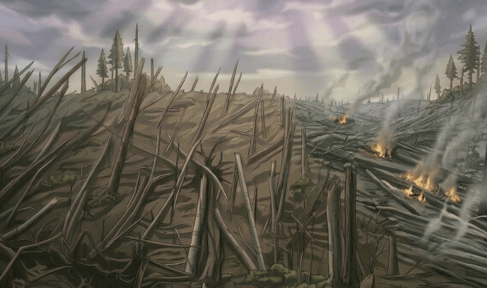 ã·ããªã¢äžç©ºã§èµ·ãã巚倧ãªççºã«ãããåºå€§ãªæ£®æãäžç¬ã§ãªãåãããŸãããçŸåšã§ã¯ãå°ææãŸãã¯åœæã®ç Žçãäžç©ºã§ççºããçŸè±¡ã ã£ããšèããããŠããŸãã