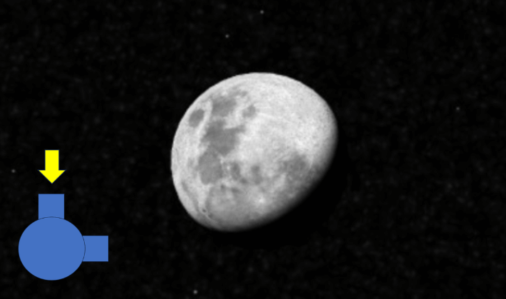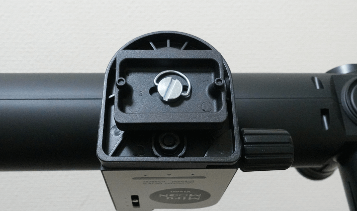 月が天頂付近(真上)にあるときは、パンハンドルが三脚に当たってしまい、望遠鏡を真上に向けにくくなることがあります。この場合は、パンハンドルの向きを逆向きに付け替えると干渉しにくくなり、天頂付近までスムーズに向けられるようになります。月が高く昇る季節や時間帯には、この向きにしておくと操作がぐっと楽になります。