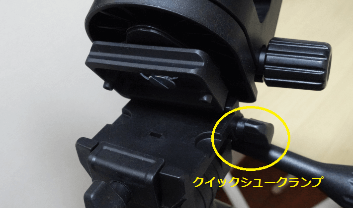 望遠鏡本体を取り付けて、クイックシュークランプをしっかりと締めます