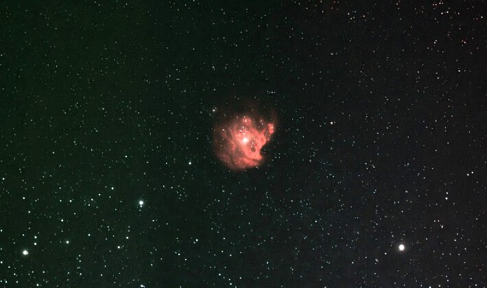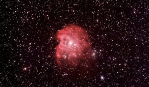 モンキー星雲は地球から約6,400光年離れた場所にある星雲で、中心部に存在する明るく高温の星が放つ強力な紫外線によって、周囲のガスが照らされ赤く輝いて見えます。ただし肉眼ではその色をほとんど感じることはできず、カメラで長時間撮影することで初めて赤い光がはっきりと写し出されます。この星雲は新しい星が次々と誕生している「星形成領域」でもあり、複雑な物理的プロセスを経て現在のサルのような独特の形が作られました。一度サルに見えてしまうと、もうサルにしか見えなくなるのが不思議です🐵