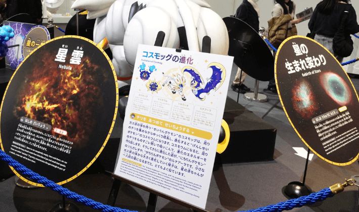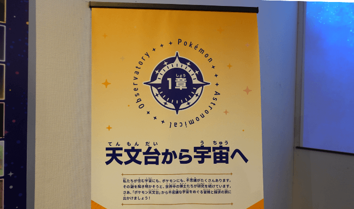 「ポケモン天文台」は、ポケモンを通じて宇宙を身近に感じられるよう工夫された体験型の展覧会です。この展示には、「宇宙の不思議や魅力を、ポケモンと一緒にやさしく伝えたい」という思いが込められています。宇宙や星、月などをテーマにしたポケモンたちが案内役をつとめており、科学にあまりなじみのない方でも親しみやすい内容になっています。