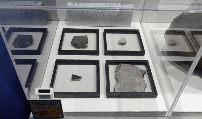 「メテノトンネル」は、宇宙からやって来た隕石ポケモン・メテノをテーマに、星のかけらが降り注ぐような演出が施されている展示エリアです。実際に宇宙から地球に落ちた隕石が数多く展示されており、隕石を間近で観察できます。