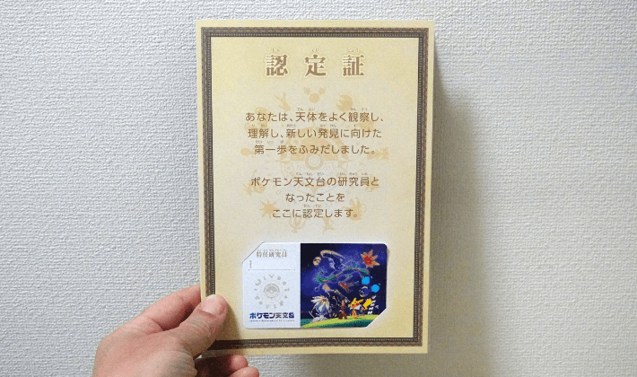 すべてのクイズに答え終えると、最後に「宇宙探検の認定書」がもらえます! この認定書は、展示を通して宇宙の不思議を学び、ポケモンたちと一緒に旅をしてきた証。子どもたちはもちろん、大人も思わず笑顔になる、そんな素敵な記念品です!