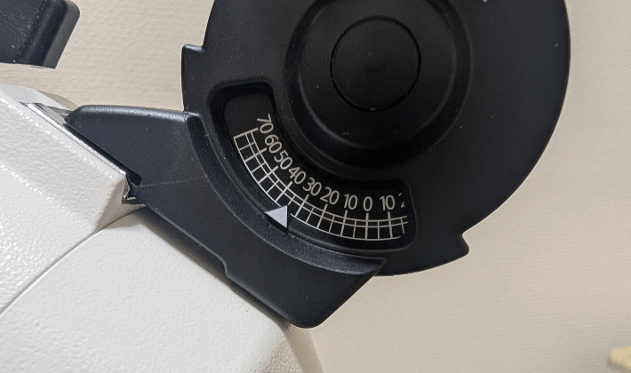 ポーラーメーター本体側面にある「傾斜クランプ(ネジ)」を緩めて、傾斜計の目盛りにある矢印を、使用地の角度に合わせます。以下は、各地域におけるポーラーメーター傾斜計の目安ですが、傾斜計で細かく正確に合わせるのは難しいため、おおよその角度で問題ありません。