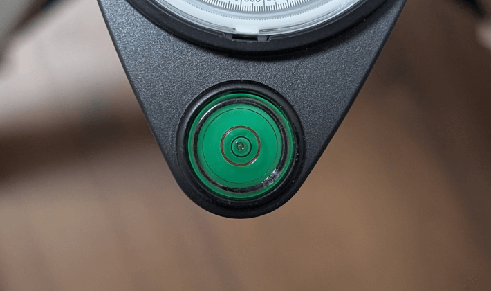 三脚の脚の長さを調整して、ポーラーメーター上部にある水準器の気泡が中央の円の中に入るようにします。