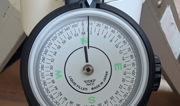 東京周辺でポーラーメーターを使用する際、コンパスの「N」にそのまま合わせると、実際の真北からわずかにずれてしまいます。これは、コンパスが示す北が地理的な北である「真北」ではなく、地磁気に基づく「磁北」を指しているためです。磁北と真北の間には地域ごとに異なるずれがあり、これを「磁気偏角」と呼びます。